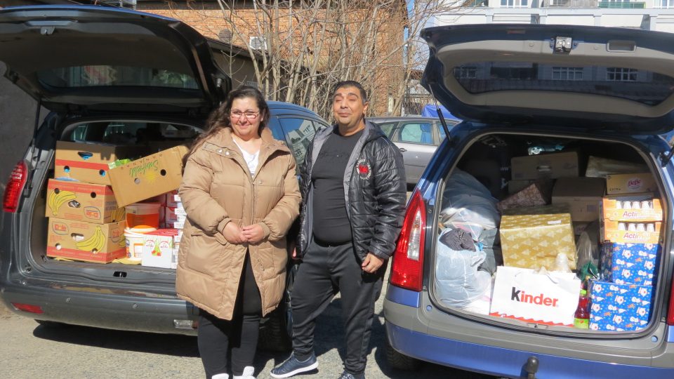 Romové v Česku i na Slovensku se zapojují do pomoci obětem ruské agrese na Ukrajině. Humanitární pomoc do Božičan na Sokolovsku zavezl například spolek Identity Prague, který vede Jana a Petr Ščukovi.